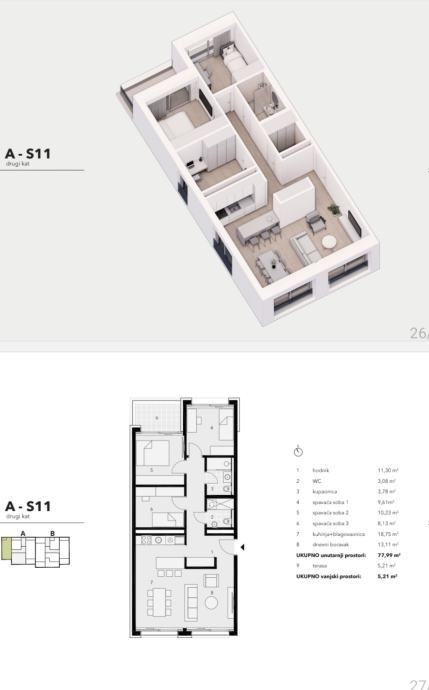 Novogradnja s 27 stanova raspoređenih na 3 nadzemne etaže (prizemlje+kat+uvučeni kat).