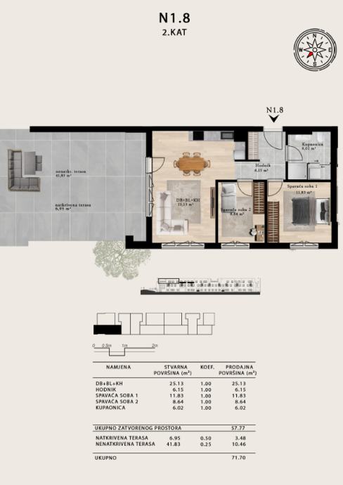PROJEKT LUKORANSKA II - MEBALIFE, STAN N1.8 (71,70M2) - 3400€/M2 (prodaja)