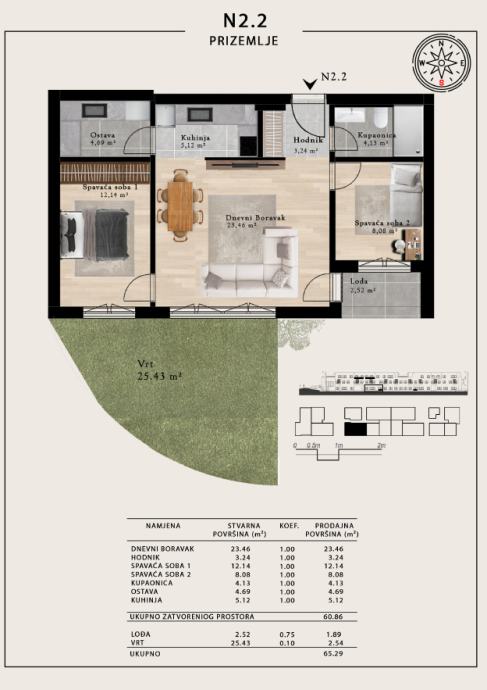 PROJEKT LUKORANSKA II - MEBALIFE, STAN N2.2 (65,29M2) - 3100€/M2 (prodaja)
