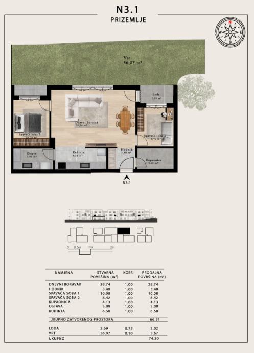 PROJEKT LUKORANSKA II - MEBALIFE, STAN N3.1 (74,20M2) - 3400€/M2 (prodaja)