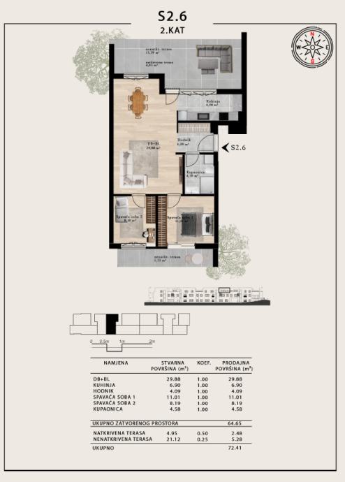 PROJEKT LUKORANSKA II - MEBALIFE, STAN S2.6 (72,41M2) - 3600€/M2 (prodaja)
