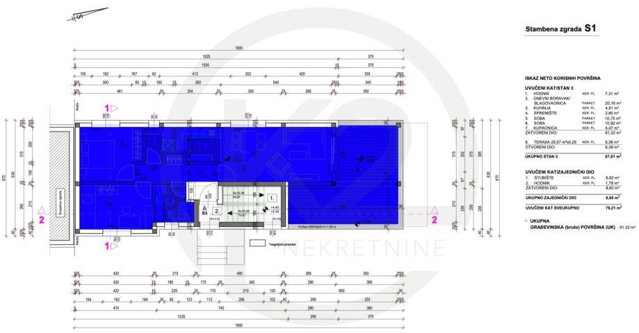 - Uz stan je obvezna kupnja i vanjskog parkirnog mjesta ili garaže.