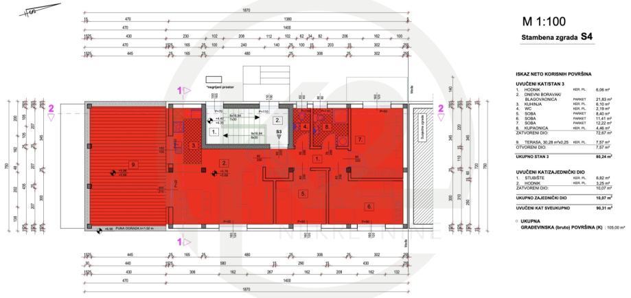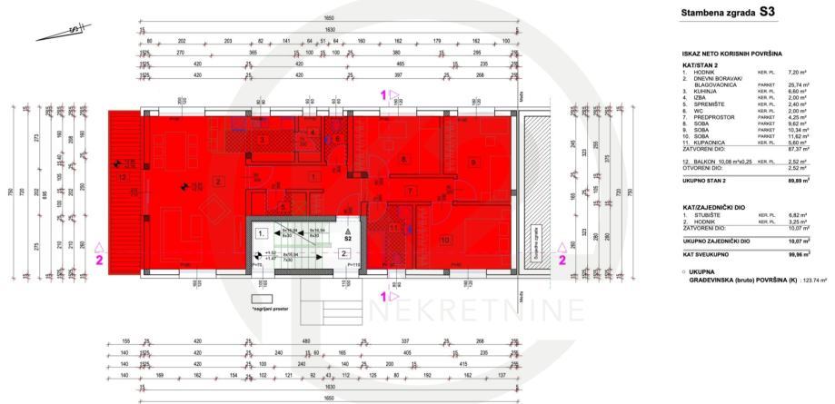 Uz stan je obvezna kupnja i vanjskog parkirnog mjesta ili garaže.