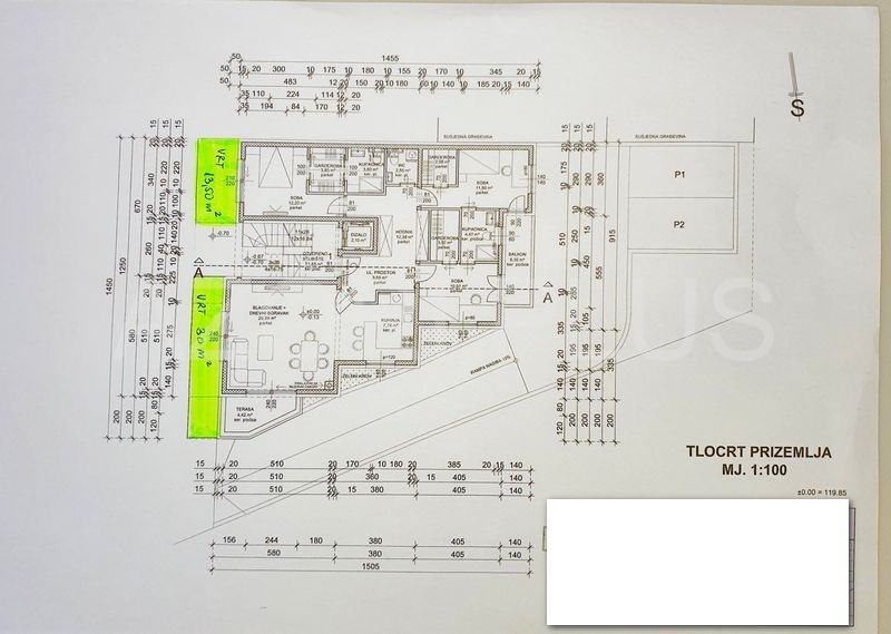 UKUPNA PRODAJNA POVRŠINA STANA +POVRŠINA S KOEFICIJENTIMA ZA NATKRIVENE BALKONE + POVRŠINE OBA VRTA IZRAŽENA PO KOEFICIJENTIMA IZNOSI 118,83 m2