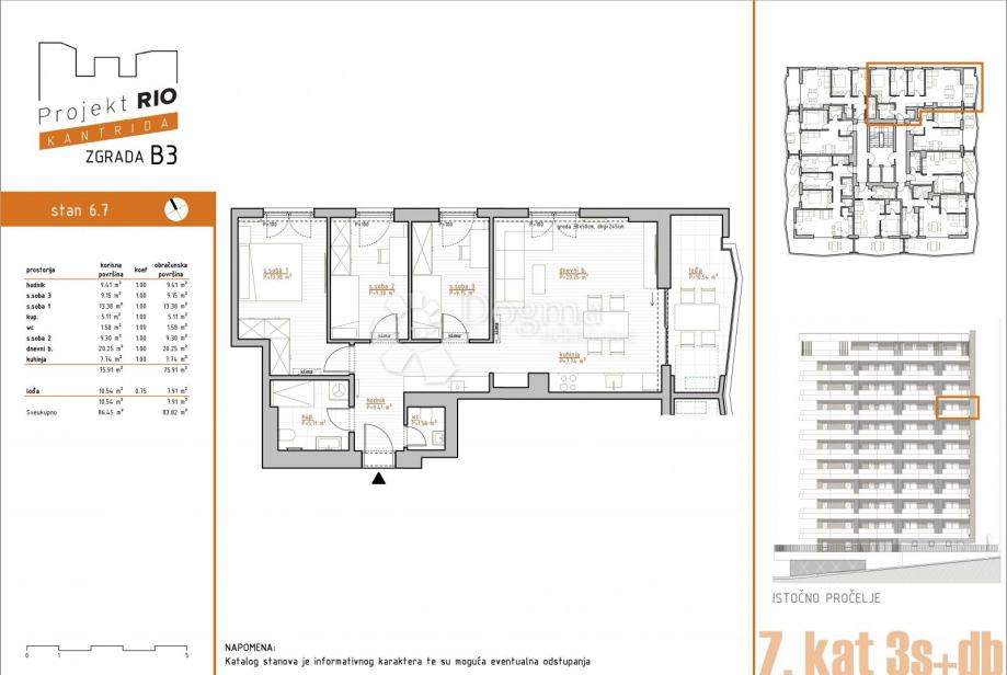 Smještena na vrlo popularnoj poziciji koja opravdano slovi kao najpoželjnija i najatraktivnija višestambena lokacija na zapadnom dijelu grada, pruža mnoge sadržaje u neposrednoj blizini: dvije osnovne škole (Kantrida i Zamet), četiri dječja vrtića, sportsku dvoranu Zamet, otvorene teniske terene u Marčeljevoj Dragi, bazenski kompleks, plaže s lučicom i šetnjicom lungomare, stadion Kantrida, shoping centar, odlična prometna povezanost, blizinu gradskih linija i zračnih luka, te brojne druge pogodnosti za ugodan život. Ovi stanovi pružaju savršenu kombinaciju udobnosti, eleganacije i funkcionalnosti te izuzetne praktičnosti blizine svih potrebnih sadržaja za život. Blizina Opatije dodatna je vrijednost ove pozicije. Svaki stan pažljivo je osmišljen kako bi odgovarao različitim životnim stilovima, od prostranih obiteljskih prostora do kompakntih jedinica za pojedince ili parove kao i dva luksuzna penthousa na vrhu zgrade za one željne luksuza. Zgrada se sastoji od 10.katova. Garažna parkirna mjesta nalaze se na etažama -1 i -2, spremišta suteren i prizemlje, stanovi su raspoređeni od prizemlja do 10.kata sa prekrasnim pogledom na Kvarner.