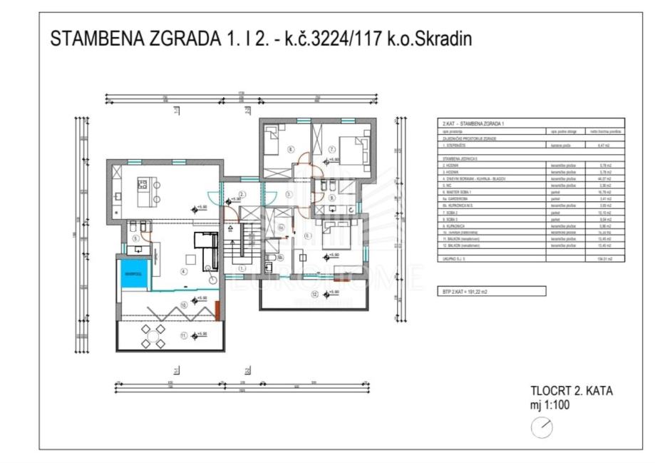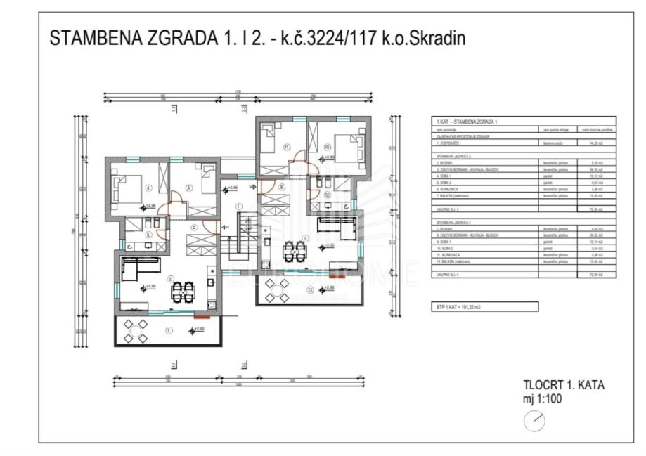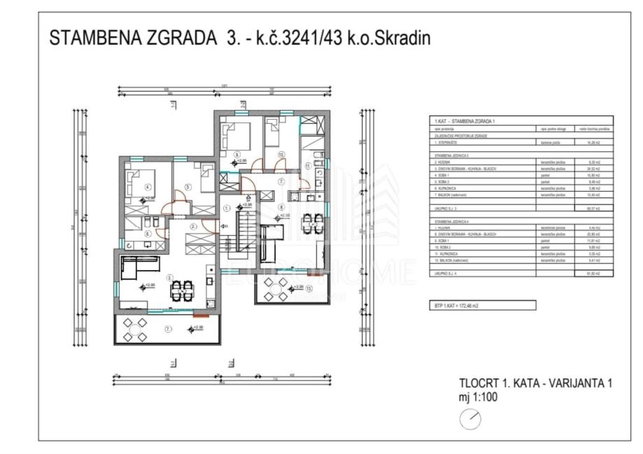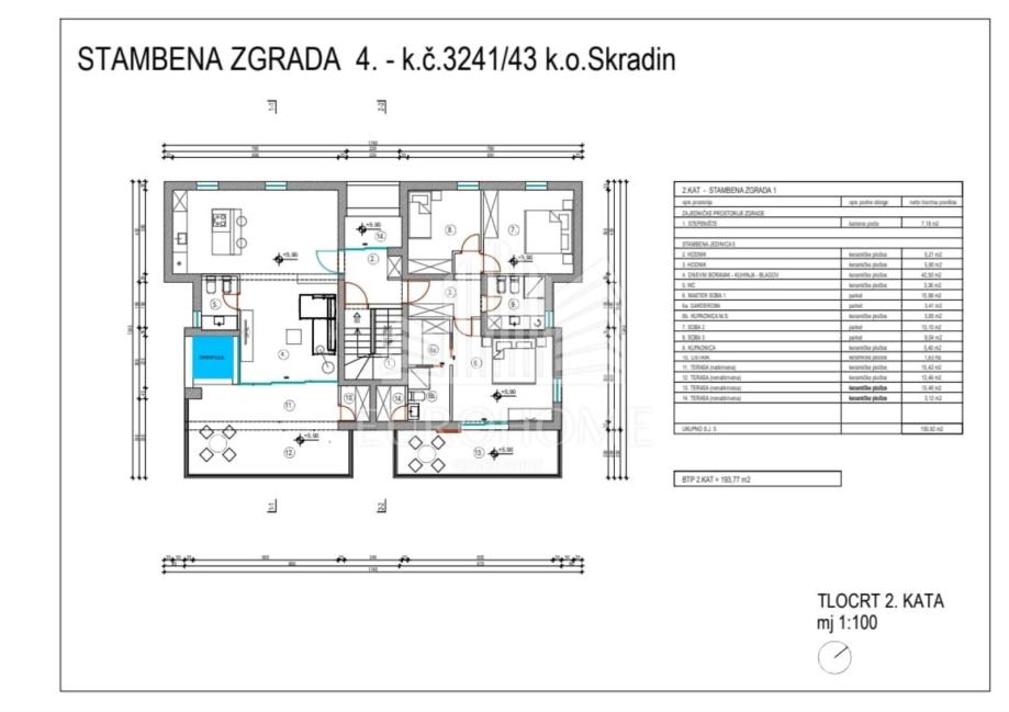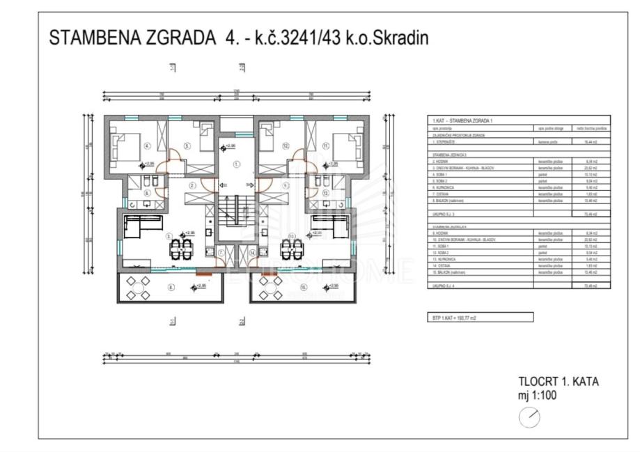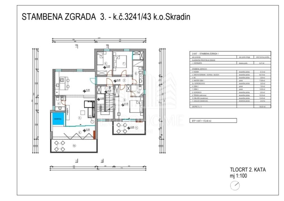Prema projektu, planirano je ukupno 1819 m² neto prodajne površine. Svaki objekt predviđen je s vlastitim bazenom, a svaki apartman ima osigurano parkirno mjesto.