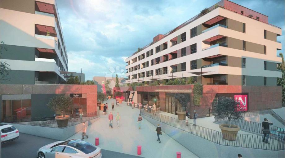Višestambena građevina, sukladno detaljnom planu obuhvaća 104 stambene jedinice s garažnim prostorom, spremištima i 7 poslovnih prostora.