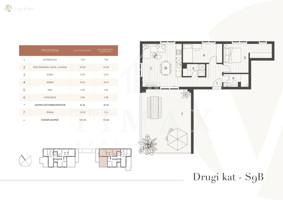 Projekt Vita Klara, Trosoban stan S9B, drugi kat, 70,86 m2 (prodaja)