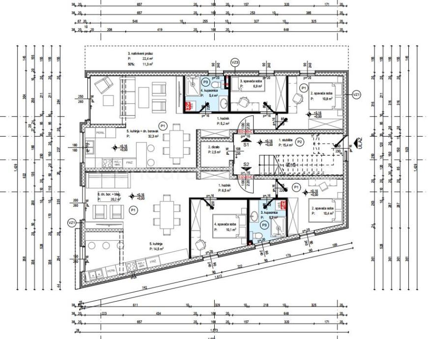 Osigurana 2 parkirna mjesta po stanu (dim. 5,5 x 2,5 m)