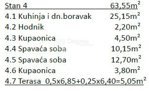 Na prodaju je stan od 63.55 m2. Sastoji se od 2 prostrane spavaće sobe, moderno opremljene kupaonice, dnevnog boravka, kuhinje te prostrane terase bruto površine 13.25 m2 idealne za opuštanje ili druženje na otvorenom u udobnosti vlastitog doma.