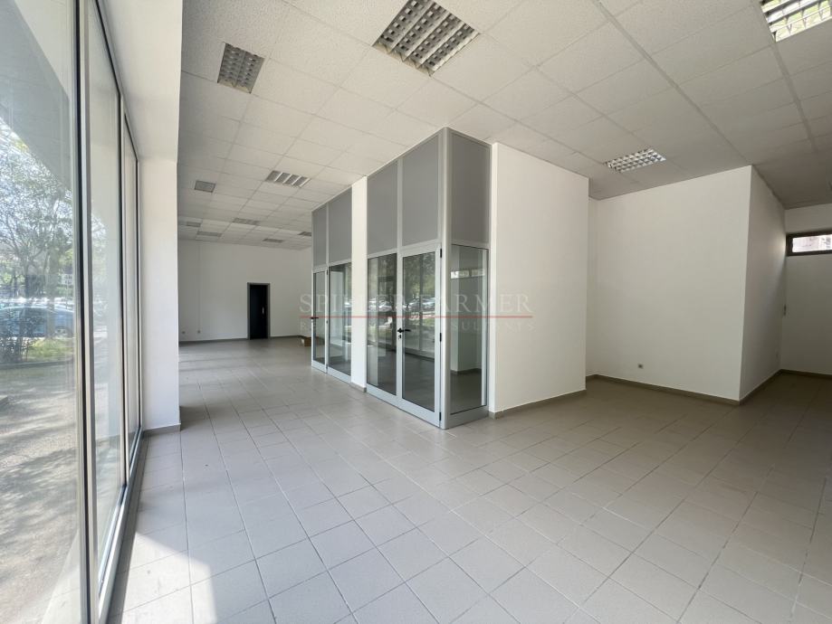 Površina prostora je 242 m² te se sastoji od otvorenog prostora, malog odvojenog ureda i sanitarnog čvora. Odlikuje ga velika staklena fronta koja pruža dobar izvor svjetlosti, a može se koristiti u marketinške svrhe.