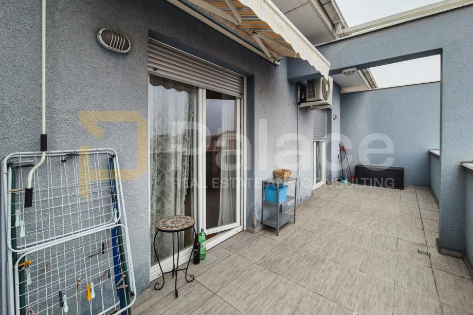 Ovaj stan odlikuje se promišljenim rasporedom, vrhunskom funkcionalnošću i obiljem prirodnog svjetla zahvaljujući orijentaciji sjever–jug, no ono što ga čini posebnim su dvije velike terase koje se protežu duž cijelog stana.
