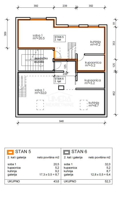 Stan se prodaje kao cjelina, uz mogućnost kupnje dva stana smještena u potkrovlju, što omogućuje brojne mogućnosti za preuređenje ili investiciju.