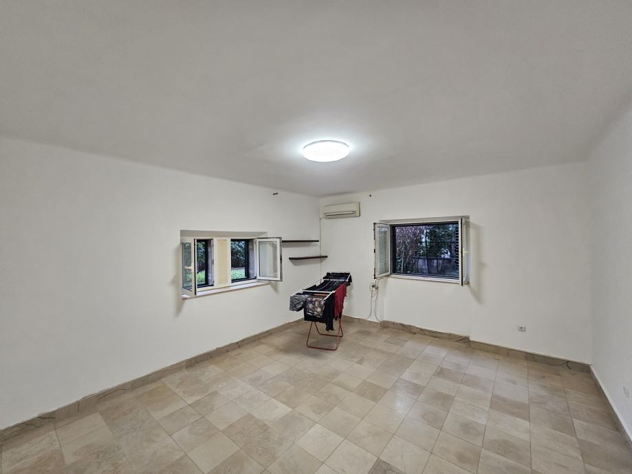 Prodajemo stan površine 78 m² s dodatnom ostavom od 2 m² i izlazom na ograđeno dvorište okruženo zelenilom. Smješten je u mirnom dijelu grada koji pruža izvanredne mogućnosti za život, korištenje u turističke svrhe ili kao uredski prostor, te je u blizini velikog parkinga za koji se može ishoditi povoljna stanarska mjesećna pretplata ( 15 E ). Stan se nalazi u manjoj stambenoj zgradi povjesnog štiha, a sastoji se od prostranog dnevnog boravka, kuhinje s blagovaonicom, dvije spavaće sobe, kupaonice s WC-om te dodatnog odvojenog WC-a. Orijentacija stana na sjever, jug i istok osigurava dovoljnu količinu prirodnog svjetla tijekom cijelog dana. Iako je stan nedavno osvježen, preporučuje se renovacija kako bi se dodatno prilagodio potrebama budućih vlasnika. Vlasništvo je 1/1.