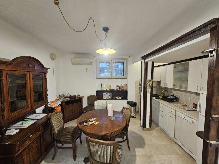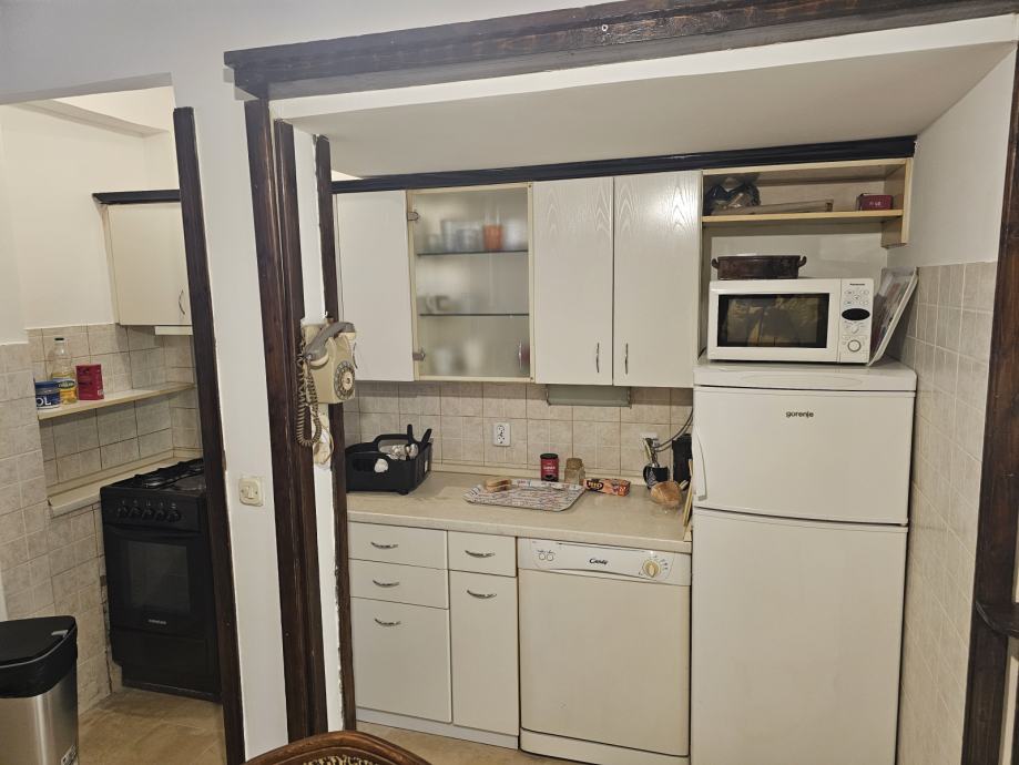 We are selling an apartment with a surface area of 78 m², accompanied by an additional 2 m² storage space and access to a fenced yard surrounded by greenery. It is located in a quiet part of the city, offering exceptional opportunities for living, tourism, or use as office space. Additionally, it is close to a large parking area where residents can obtain an affordable monthly parking permit (€15). The apartment is situated in a smaller residential building with a historic charm and consists of a spacious living room, a kitchen with a dining area, two bedrooms, a bathroom with a toilet, and an additional separate toilet. Its north, south, and east orientation ensures plenty of natural light throughout the day. Although the apartment has been recently refreshed, renovation is recommended to further tailor it to the needs of its future owners. Ownership is clear and registered (1/1).