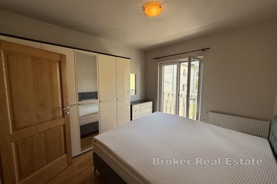Iznajmljuje se jednosoban stan na Manušu na odličnoj lokaciji s mogučnošću parkinga. Stan se nalazi na prvom katu kuće sa 4 stana te se sastoji od ulaznog prostora, kuhinje i blagovaonice, dnevne sobe iz koje se puža izlaz na dva balkona. Spavaća soba također ima izlaz na balkon, te je vrlo dobro povezana sa kupaonicom s tušem i kadom. Nekretnina također posjeduje spremiše u sklopu stana.