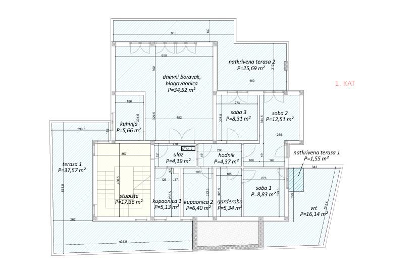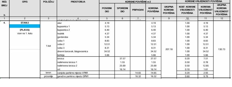 Stan sa terasama, vrtom, garažom i parkirnim mjestom ima ukupno stvarne korisne površine impresivnih 207,18m2.