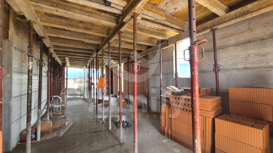 Upravo u Štinjanu se nalazi ovaj penthouse visokokvalitetne novogradnje sa strane provjerenog investitora sa sveukupno 4 stambene jedinice. Ovaj stan je smješten na drugom katu i površine je 110 m2 sa jednim parkirnim mjestom. Stan se sastoji od ulaznog predprostora, veoma prostranog i komfornog dnevnog boravka spojenog sa kuhinjom i blagavaonicom open space koncepta površine 50 m2 u kojem će biti postavljena klizna staklena stijena sa električnim roletama kroz koju će se pristupati na natkrivenu terasu, tri komforne spavaće sobe sa izuzetno velikim dnevnim otvorima i dvije kupaonice. Sama zgrada je opremljena armiranim nosivim zidovima kao i vatrogasnim zidom između nekretnina te je planirana termoizolacija debljine 10 cm. Sustav grijanja i hlađenja planirano je regulirati putem jedinice klima uređaja te će biti sprovedeno podno grijanje u cijelom objektu sa termostatima u svakoj prostoriji. Stan će također biti opremljen visokokvalitetnom PVC stolarijom antracit boje troslojnog stakla sa 9 plinskih komora.