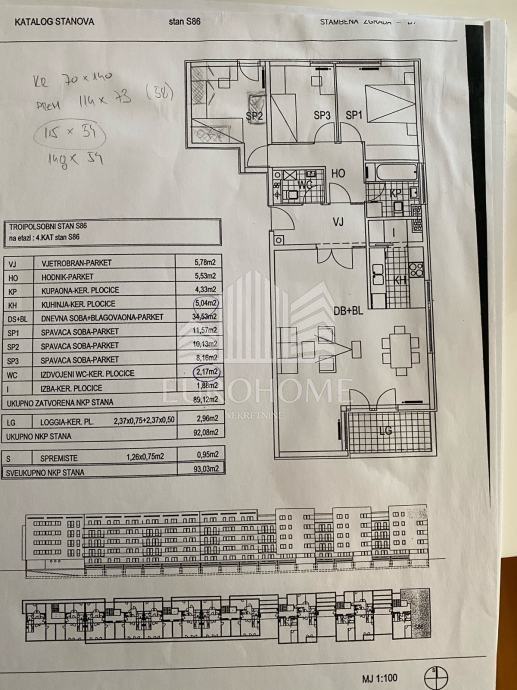 Prodaje se predivan prostran četverosobni stan (89,20m2 unutarnje površine + loggia 4,72m2 + spremište 2 m2) u srcu Novog Jelkovca na četvrtome katu armirano betonske stambene zgrade s liftom.