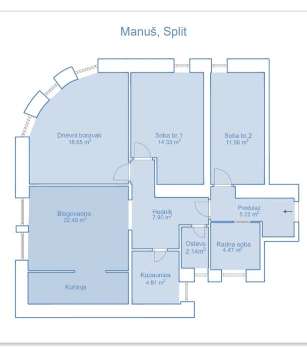 Na atraktivnoj lokaciji u Splitu, predio Manuš, prodaje se stan površine 95 m² smješten u suterenu stambene zgrade. Stan je u izvornom stanju te je potrebna renovacija, što omogućuje uređenje prema vlastitim željama i potrebama. Zahvaljujući svojoj funkcionalnoj prostornoj organizaciji i izvrsnoj lokaciji, ovaj stan idealan je kako za stanovanje, tako i za poslovnu djelatnost.