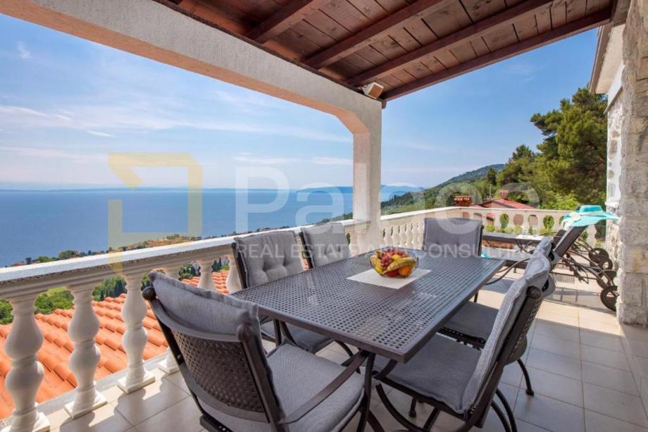 Na mirnoj lokaciji u Lovranu, smjestio se prostran i elegantno uređen stan površine 135 m², smješten u prizemlju manje stambene zgrade s ukupno četiri stana. Ova nekretnina pruža idealnu kombinaciju udobnosti, privatnosti i funkcionalnosti, a istovremeno nudi prekrasan pogled na more koji oduzima dah.