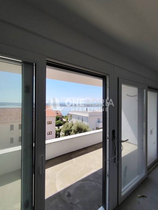 Lijepi prostran stan od 126m2 u kvalitetnoj novogradnji, sastoji se od tri spavaće sobe, dnevnog boravka, kuhinje, kupaonice, hodnika i terase sa pogledom na more!