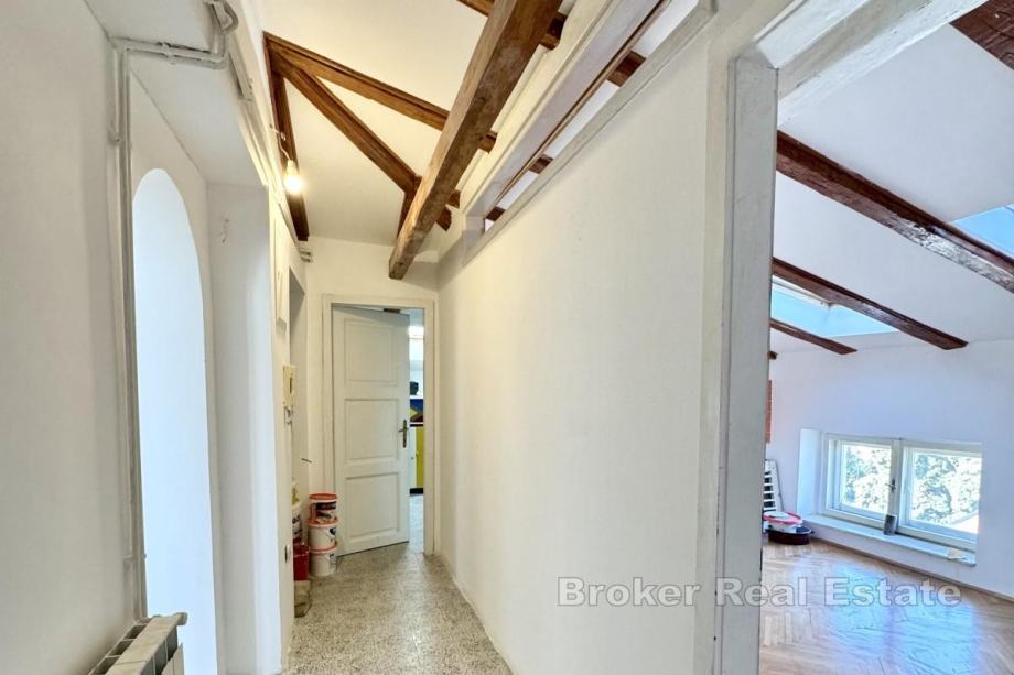 Stan je djelomično renoviran, s već postavljenim instalacijama za centralno grijanje, a pruža mogućnost daljnjeg uređenja i prilagodbe prema potrebama budućih vlasnika. U cijenu je uključena i odvojena garsonijera površine 15 m².