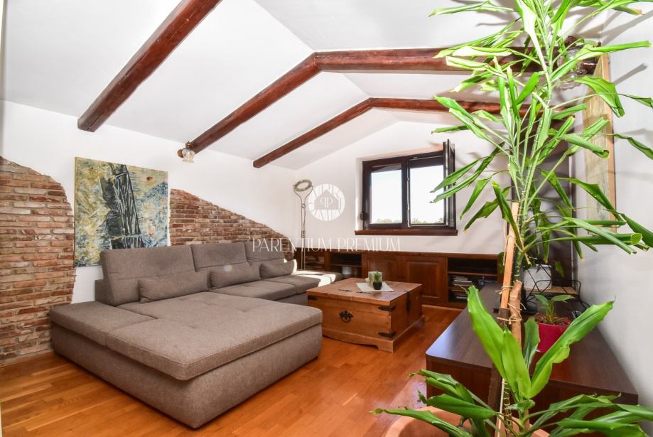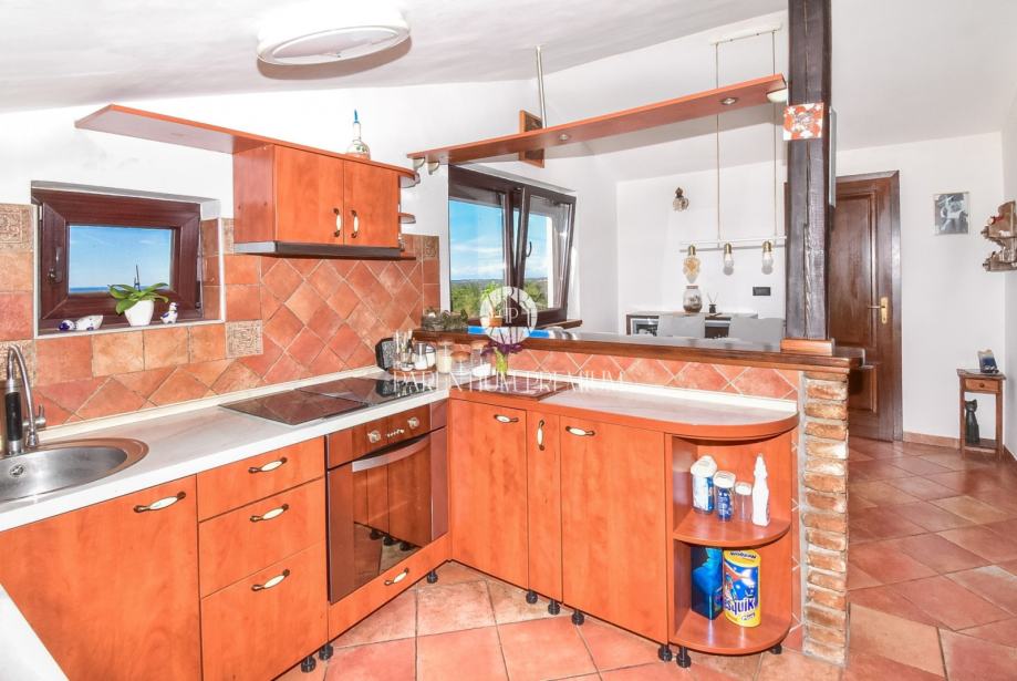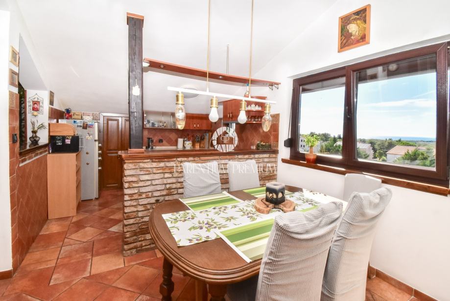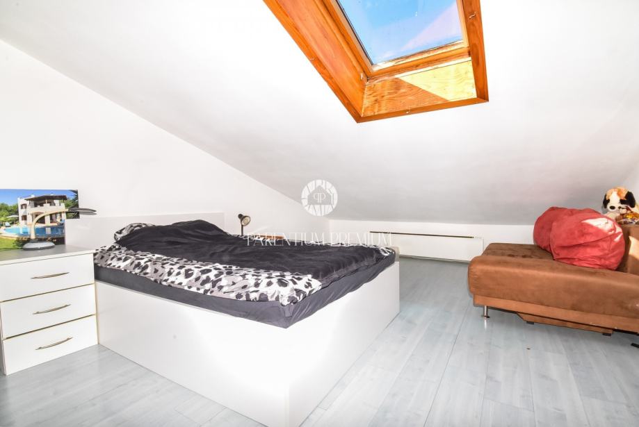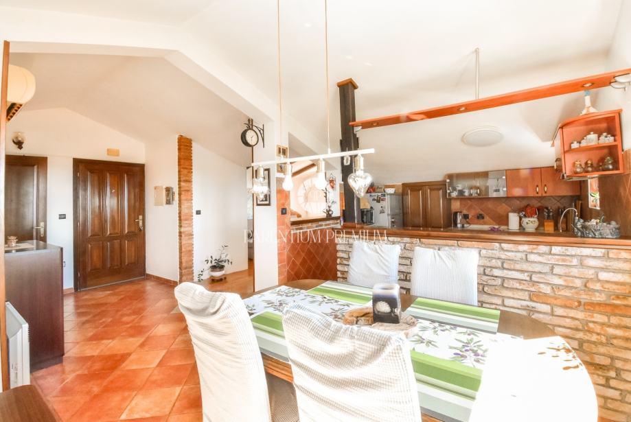 Na samo 3,5 km od mora i 4 km od centra Poreča prodaje se prostran stan s prekrasnim panoramskim pogledom na more i okolinu. Smješten je na 3. katu stambene zgrade sa sedam stanova, što osigurava mir i privatnost.