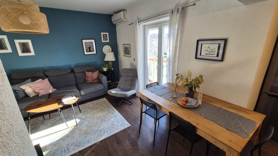 - Stanje: Potpuno useljiv, redovito održavan i renoviran (nova kuhinja po mjeri 2023., novi prozori, komarnici, dodatna klima).