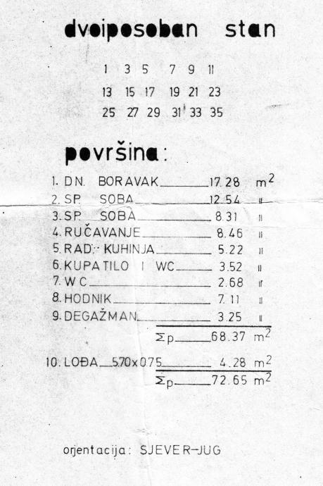 Dokumentacija uredna – vlasnički list i uporabna dozvola, stan je moguće kupiti putem kredita.