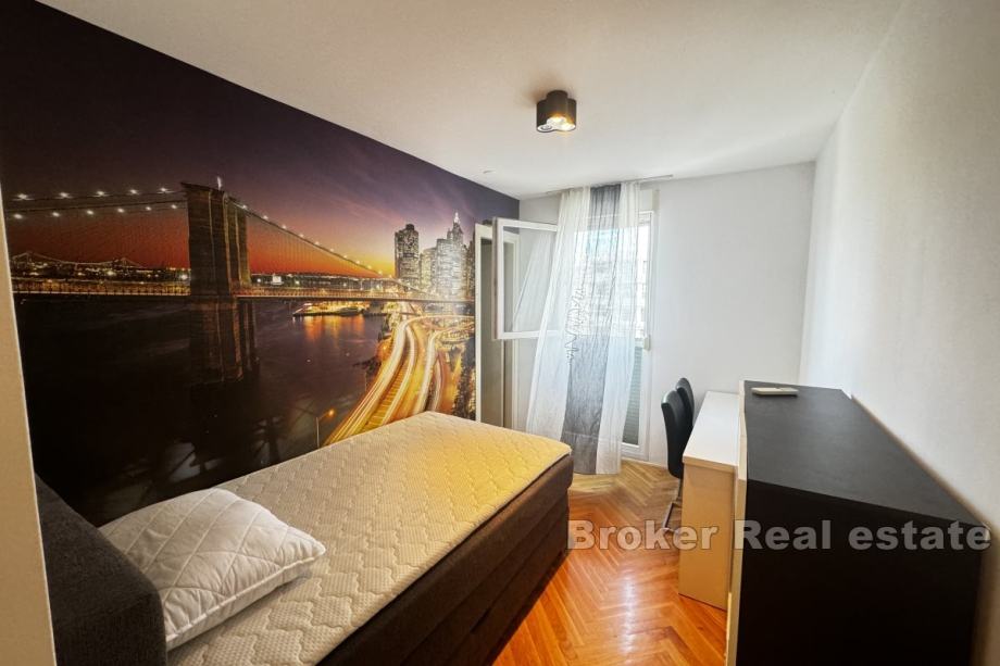 Prostran i uređen trosoban apartman smješten u novijem dijelu Žnjana, popularnog splitskog kvarta. Nalazi se na 5. katu zgrade s liftom, a nudi udoban i funkcionalan životni prostor s djelomicnim pogledom na more s balkona.