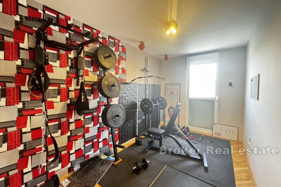 U stanu se nalaze dvije udobne spavaće sobe s ugrađenim ormarima, koje pružaju dovoljno prostora za osobne stvari. Dodatna soba je pretvorena u kućnu teretanu, što je idealno za one koji žele održavati kondiciju u udobnosti vlastitog doma, te dvije kupaonice.