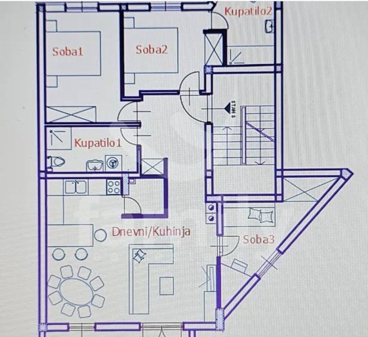 Stan na atraktivnoj lokaciji sveukupne površine 93 m2 koji se nalazi na traženoj lokaciji radi blizine svih popratnih sadržaja prodaje se u fazi završetka. Stan se nalazi u manjoj zgradi sa ukupno četiri stambene jedinice. Stan se nalazi na prvom katu i posjeduje tri spavaće sobe, kuhinju, blagavaonu koja ima izlaz na lođu i dvije prostrane kupaonice. Nekretnina je opremljena sa 3 jedinice klima uređaja od čega je jedna jačine 5 kw. Jedna kupaonica posjeduje kadu, a druga tuš kabinu. Nekretnina posjeduje dupla stakla na PVC otvorima s roletama u spavaćim sobama, a dnevni dio je opremljen škurama. Nekretnina je planirana biti popločena većinom sa pločicama s tim da postoji mogućnost odabira laminata. Cijela nekretnina je opremljena termo izolacijom od 8 cm.