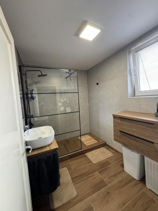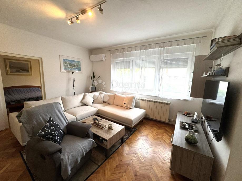 Stan se sastoji od dvije udobne spavaće sobe, prostranog dnevnog boravka te funkcionalne kuhinje povezane s blagovaonicom iz koje se izlazi na terasu. Prostor je iznimno svijetao zahvaljujući orijentaciji na istok i zapad – sobe gledaju na zapad, dok s istočne strane lođa/terasa nudi miran prostor za opuštanje uz jutarnju kavu ili večernje druženje. Posebno vrijedi istaknuti da je kupaonica potpuno renovirana ove godine, pa novi vlasnik nema potrebe za dodatnim ulaganjem.