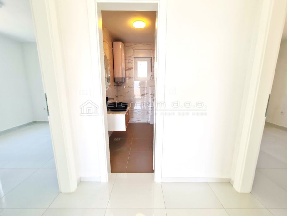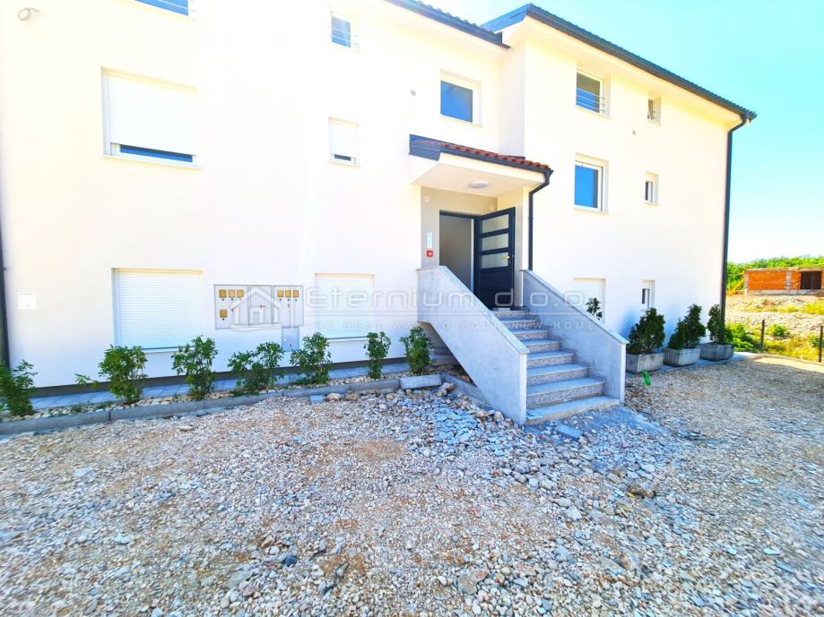 Predstavljamo Vam stan na prvome katu novogradnje koja se smjestila na mirnome mjestu, okružena šumom te ostalim sličnim nekretninama. Udaljena je od mora 350m zračne linije, odnosno 450m pješke. Ostali sadržaji poput dućana i kafića su na samo 150m.