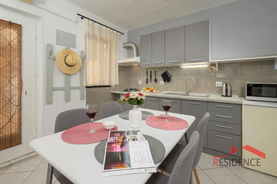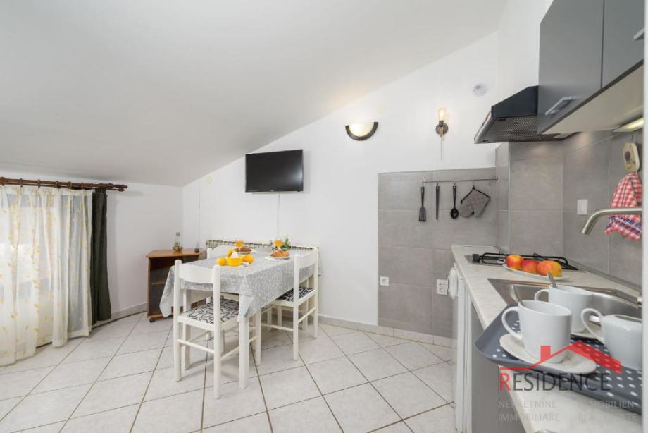 Prodajemo u Štinjanu, postranu kuću sa 7 apartmana i velikim vrtom. Kuća se prostire na prostranih 500 m2 i uključuje sedam potpuno opremljenih apartmana, od studio apartmana pa do apartmana sa dvije spavaće sobe i balkonom. Svaki apartman je namješten i opremljen klima uređajem, Wi-Fi internetom i potpuno opremljenom kuhinjom. Parkirna mjesta. Vanjski roštilj. Natkrivene terase.
