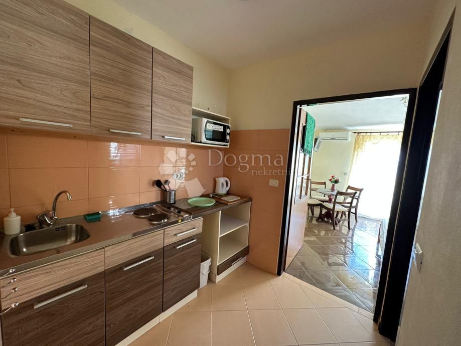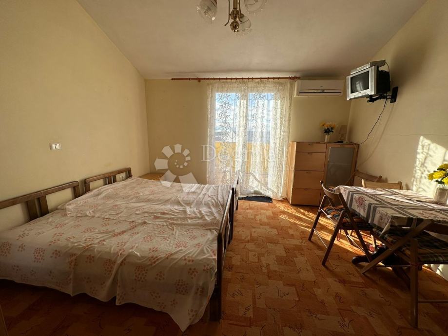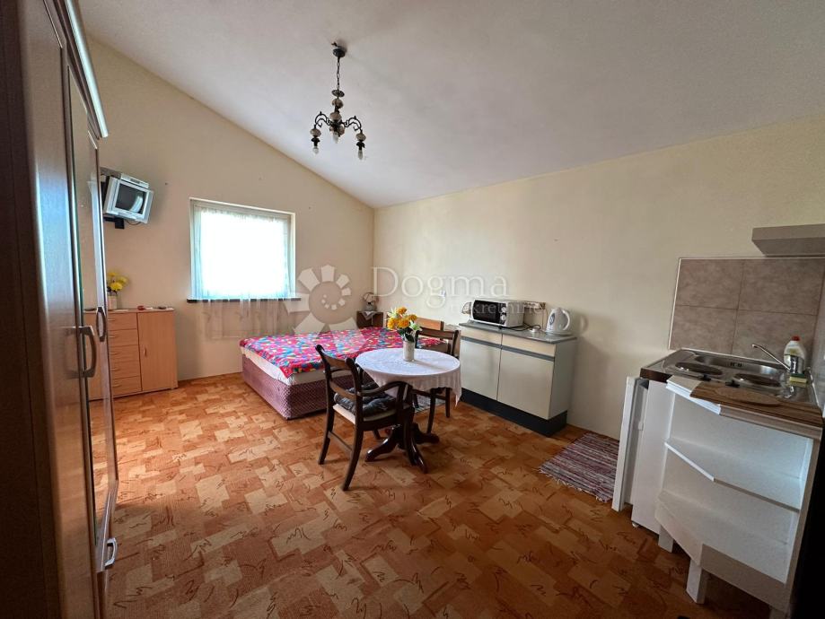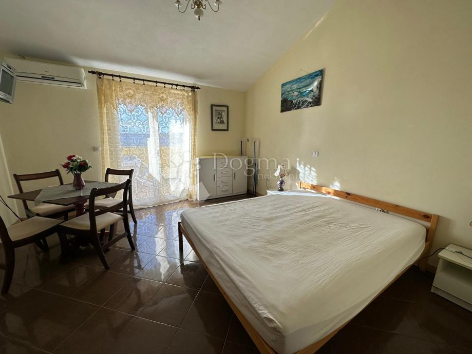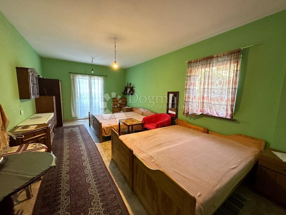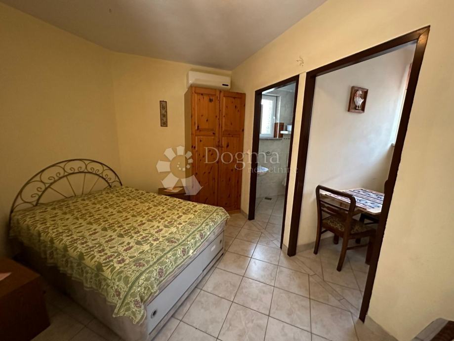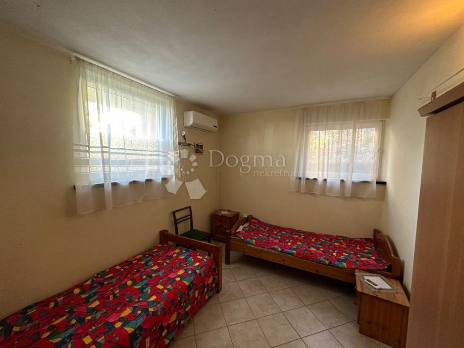 Kuća izgrađena 2004. godine, smještena na cca 950 m2 terena, na tri etaže. Dvostruko ostakljena, klimatizirana, toplinski izolirana 50 mm, izgrađena od ventilirane keramičke opeke, betona i čelika, sastoji se od 8 turističkih apartmana (svaki od njih sadrži sobu, kupaonicu, klima uređaj i terasu s pogledom na more), garaže za 6 automobila, revizijske jame i radioničkog prostora. Također, ventilacijski tunel obuhvaća kuću pružajući ugodno hlađenje ljeti.