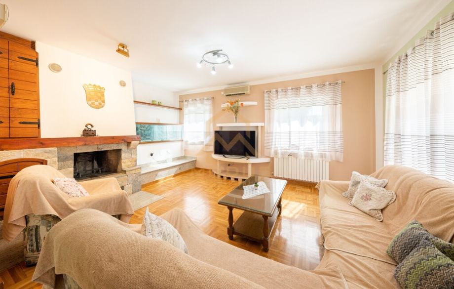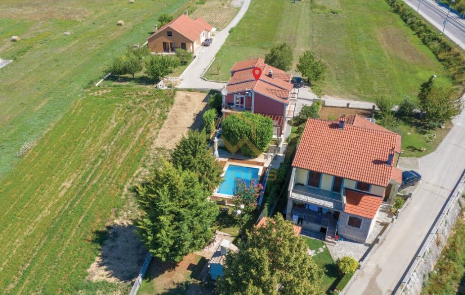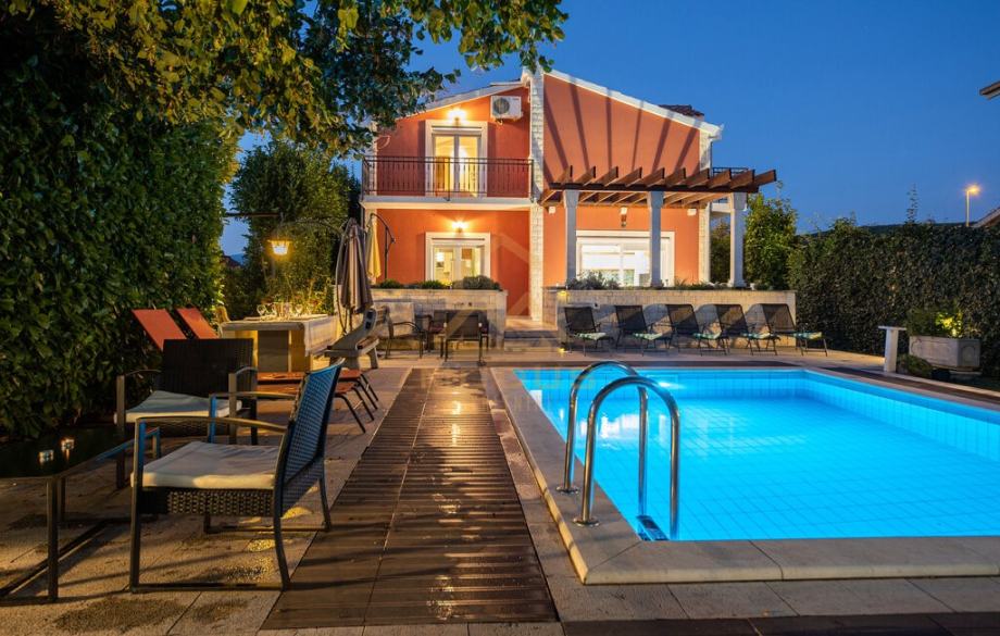 Kuća se sastoji od šest spavaćih soba, četiri kupaonice, prostranog dnevnog boravka sa kuhinjom te izlazom na ograđeni vrt gdje se nalazi bazen sa roštiljem.