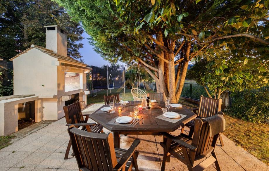 The house consists of six bedrooms, four bathrooms, a spacious living room with a kitchen and an exit to the fenced garden where there is a swimming pool with a barbecue.