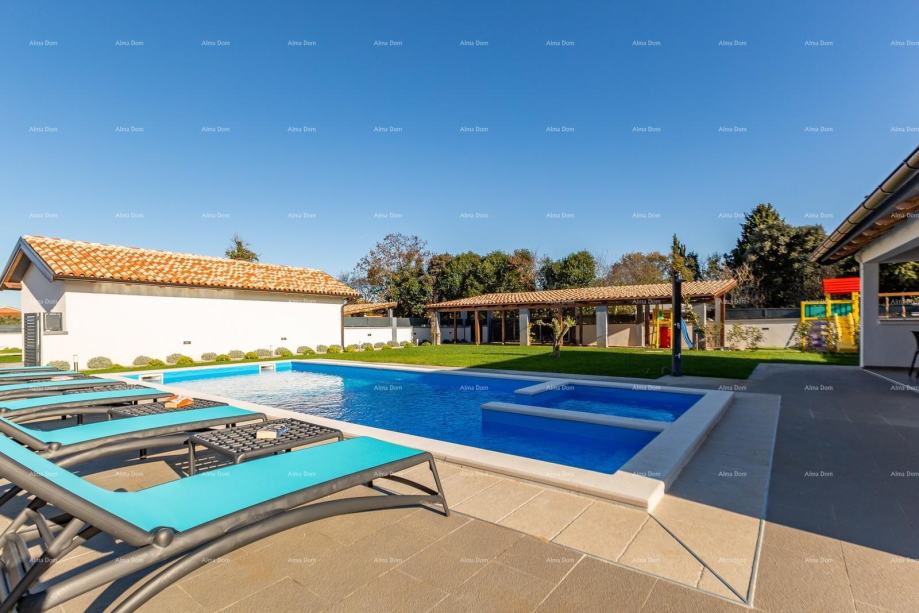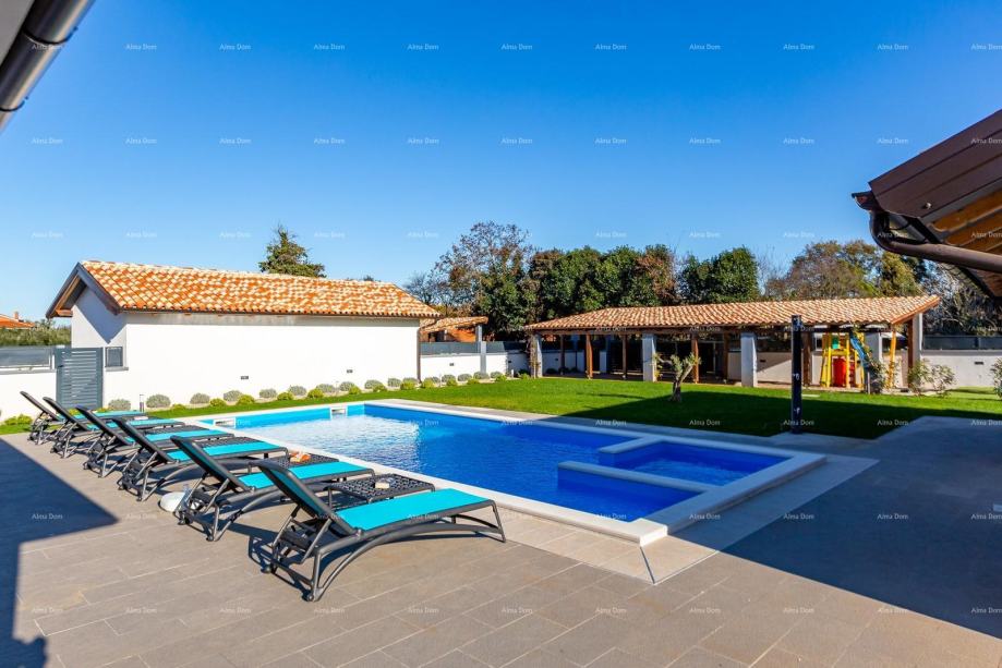 Ova prekrasna kuća u okolici Pule pruža savršenu ravnotežu udobnosti i funkcionalnosti. S površinom od 145 m², smještena na prostranom zemljištu od 850 m², nudi četiri sobe, uključujući tri spavaće sobe i tri kupaonice, idealne za obitelj. Izgrađena 2019. godine, kuća je u odličnom stanju i opremljena sustavom grijanja na struju te klimatizacijom. Udaljena samo 300 m od centra, a 4000 m od mora, pruža lakoću pristupa svim sadržajima. Uz parking i prostrane unutarnje i vanjske prostore, ova nekretnina je pravo mjesto za život u predivnoj Istri.