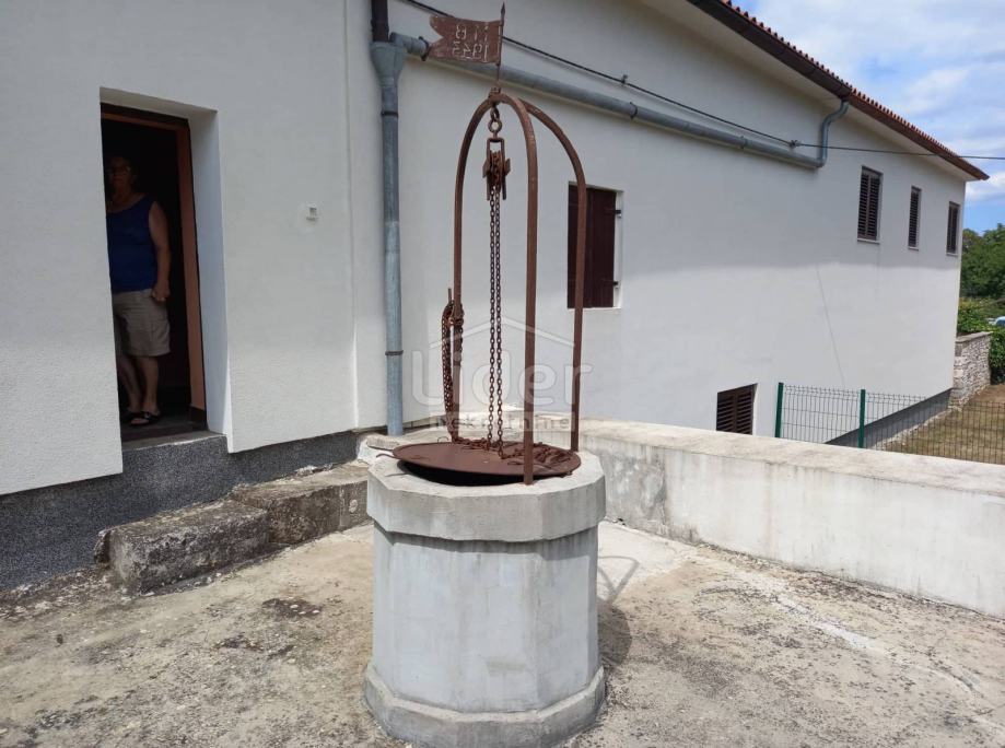Tu su i dvije velike garaže ispod prvog kata. Iza kuće malo travnatog prostora i kamena šterna. U kući je uvedeno centralno grijanje na drva.