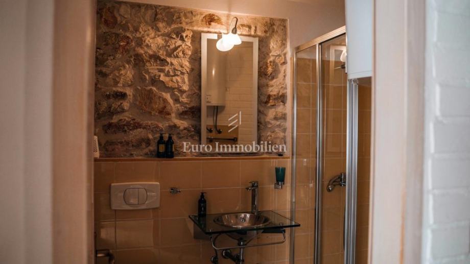 - prizemlje: 2x kuhinja sa blagovaonicom, 2x dnevni boravak, 2x kupaonice sa WC-om, 2x moderno drveno stubište sa inox ogradom, 2x izlaz na ograđenu terasu od autohtonog kamena sa ljetnim kuhinjama - električni roštilji, stara cigla betonirana. na katu, 93 m2 (57 m2 kuća i 36 m2 terasa)