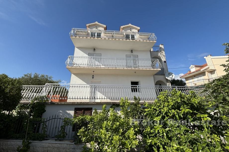 Na prodaju je kuća s pogledom na more smještena u mjestu pokraj grada Trogira. Riječ je o nekretnini koja se proteže na tri etaže i ima ukupnu stambenu površinu od 330 m2. Nekretnina se nalazi na zemljištu od 520 m2.