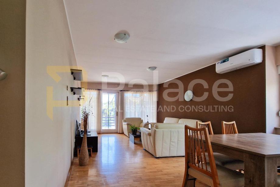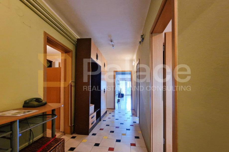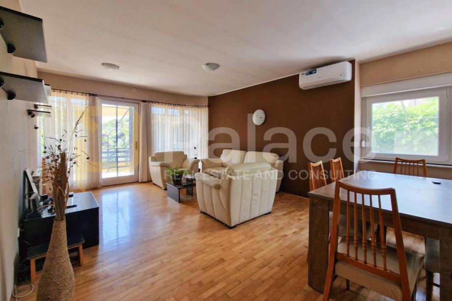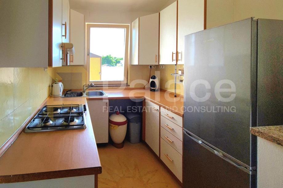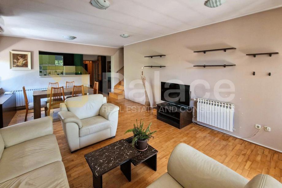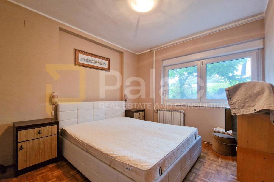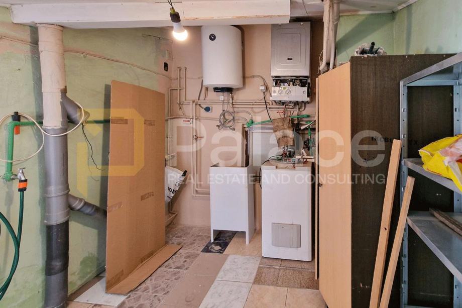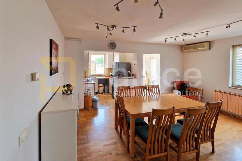 Stan u prizemlju (135 m²): 3 spavaće sobe, dnevni boravak s blagovaonicom i kuhinjom, garderobna soba, kupaonica, zaseban WC, te izlaz u dvorište. U dvorištu se nalaze: ostava s kuhinjom, radionica (voda + trofazna struja), te garaža.