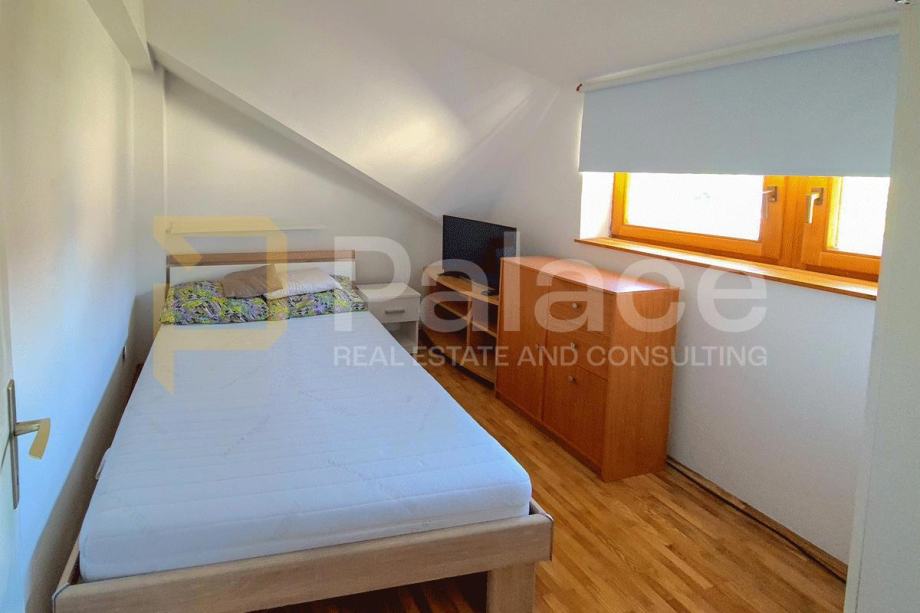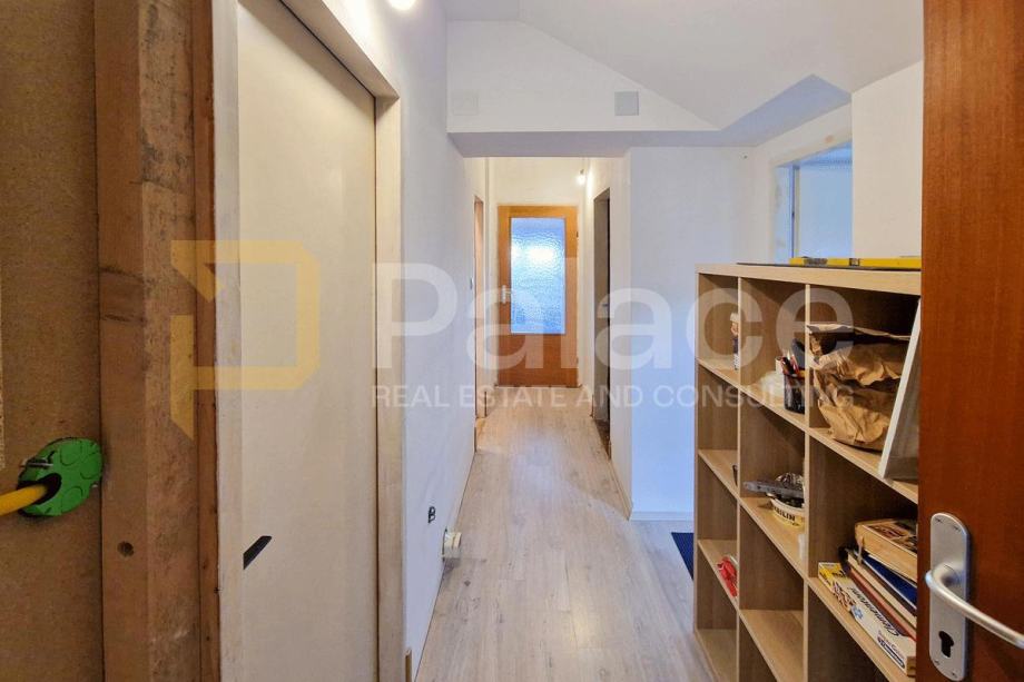 Stan u visokom potkrovlju (80 m², u fazi renovacije): predviđene 3 spavaće sobe, dnevni boravak s kuhinjom i blagovaonicom.
