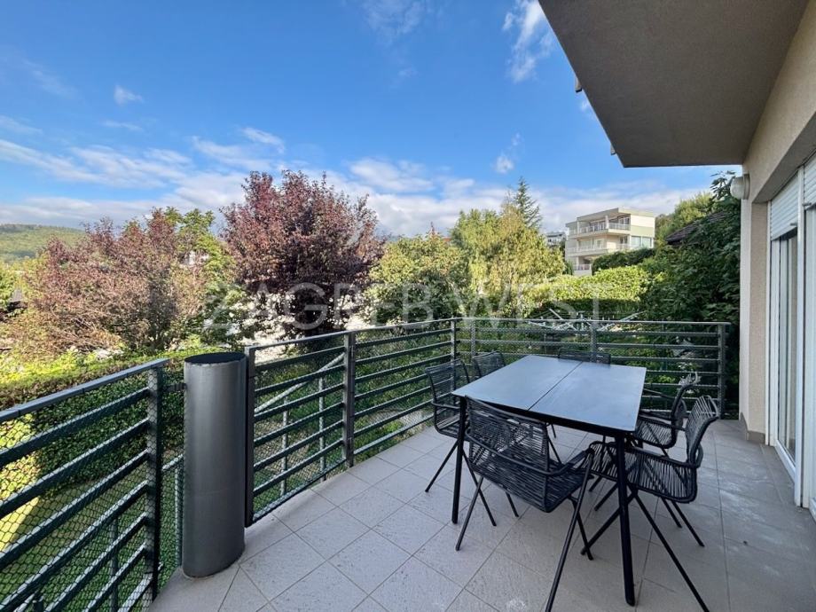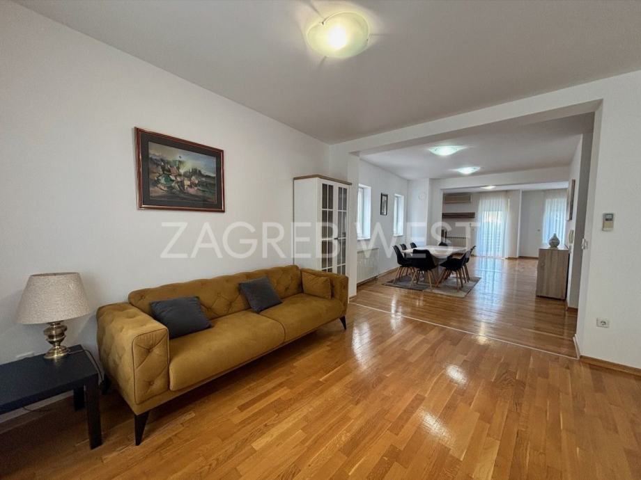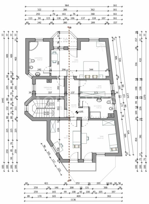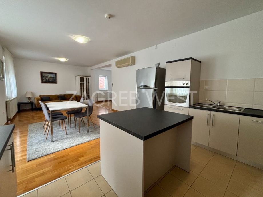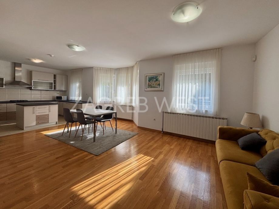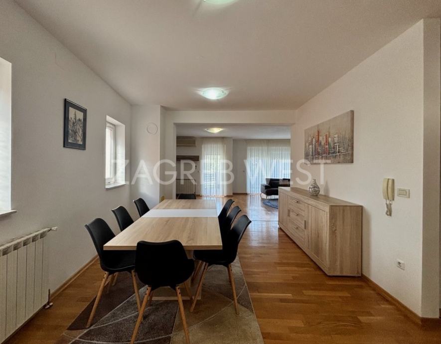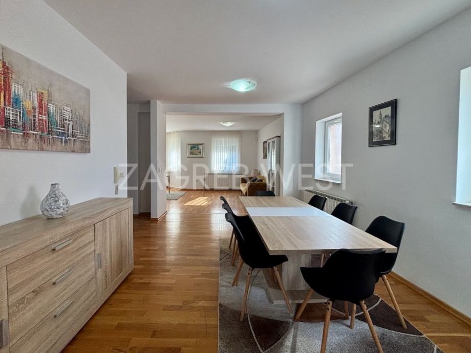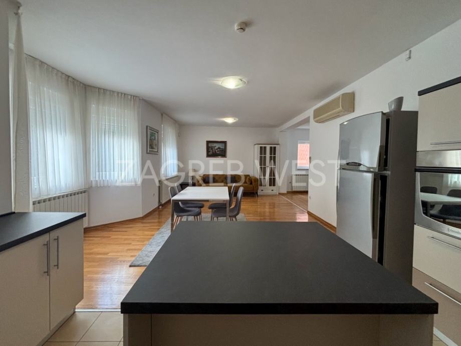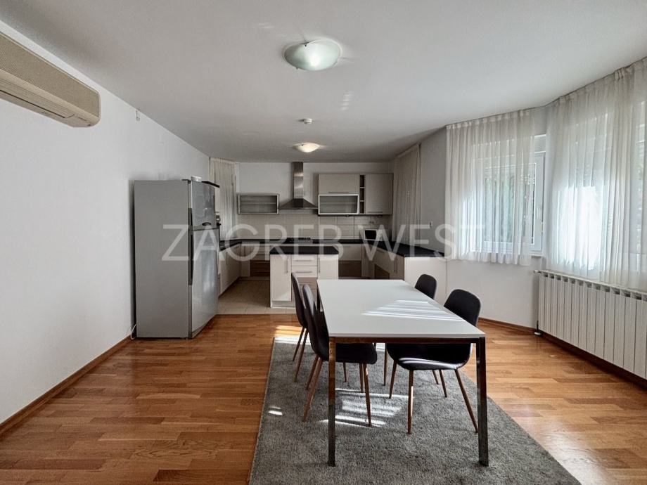 Opremljena je potpuno namještena i opremljena svi aparatima, klimom, protuprovalnim i protupožarnim alarmom, i PVC stolarijom.