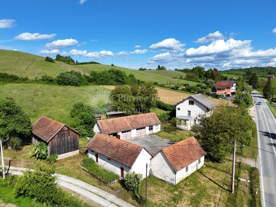 Ova svestrana seoska nekretnina nudi izvrsnu priliku onima koji žele uložiti u projekt obnove. Smještena uz glavnu asfaltnu cestu u selu u blizini Vojnića, pruža jednostavan pristup, a istovremeno nudi znatnu količinu zemljišta i više objekata, što je čini pogodnom za razne namjene, uključujući stambenu, poljoprivrednu ili poslovnu upotrebu.
