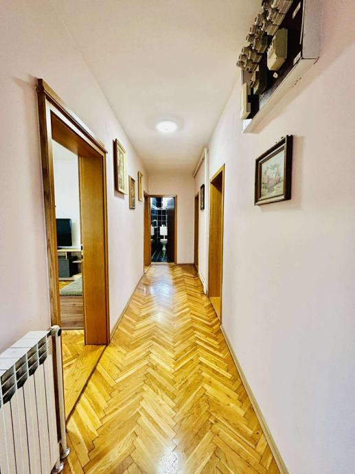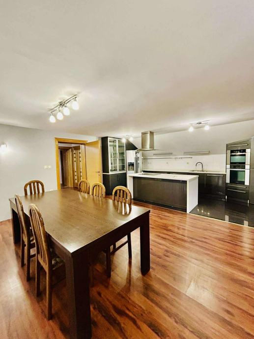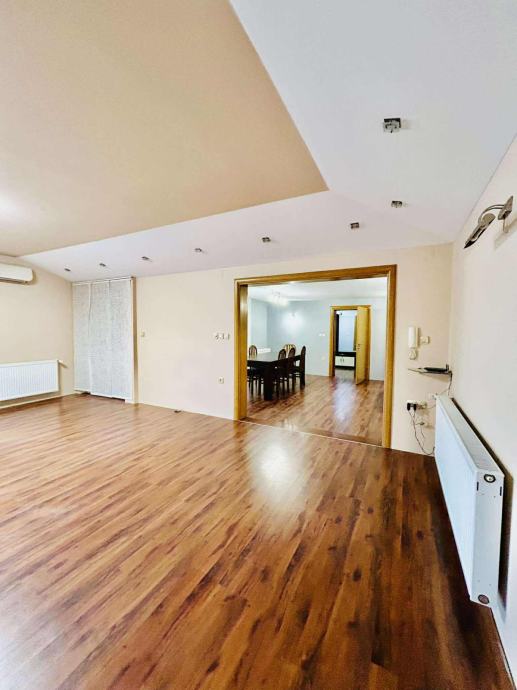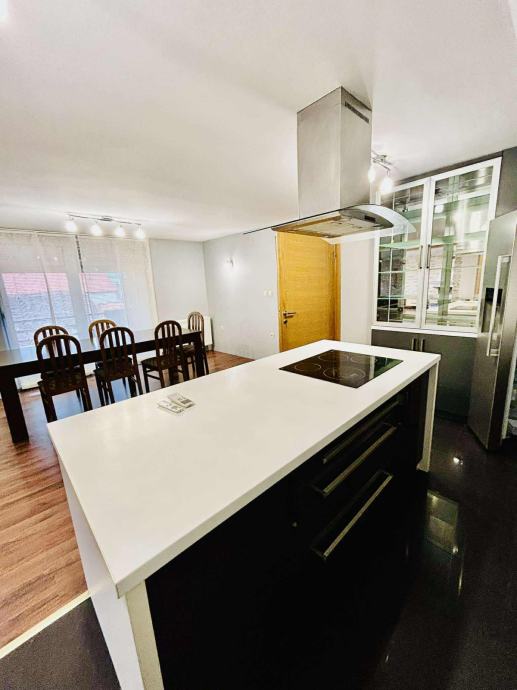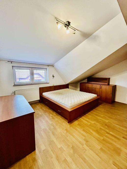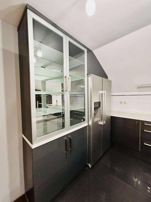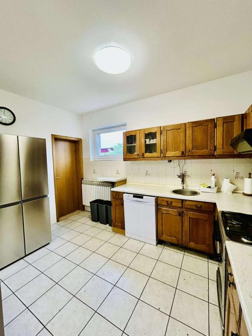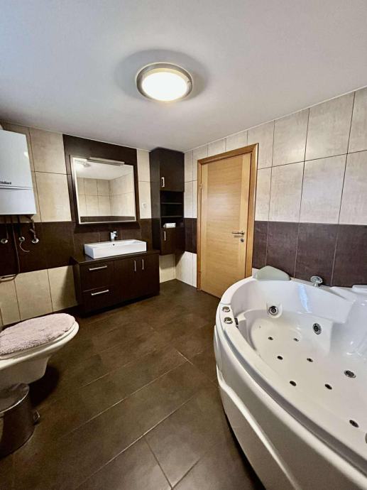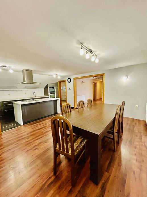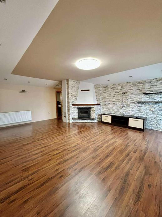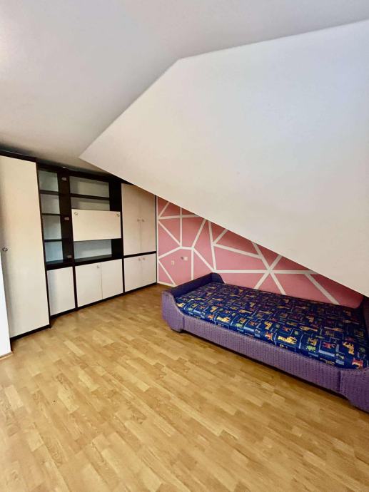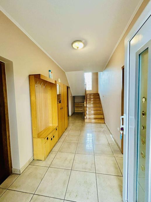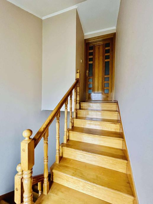 Iz prizemnog dijela drveno stubište vodi nas u katni prostor u kojemu se nalazi zaseban stan koji se sastoji od 3 spavaće sobe, hodnika, prostrane kuhinje sa blagovaonicom i špajzom, dnevnog boravka i kupaonice. Iz dnevnog boravka i blagovaonice može se izaći na prostrane natkrivene balkone - terase. Stambeni dio katnog dijela iznosi 154,05 m2.