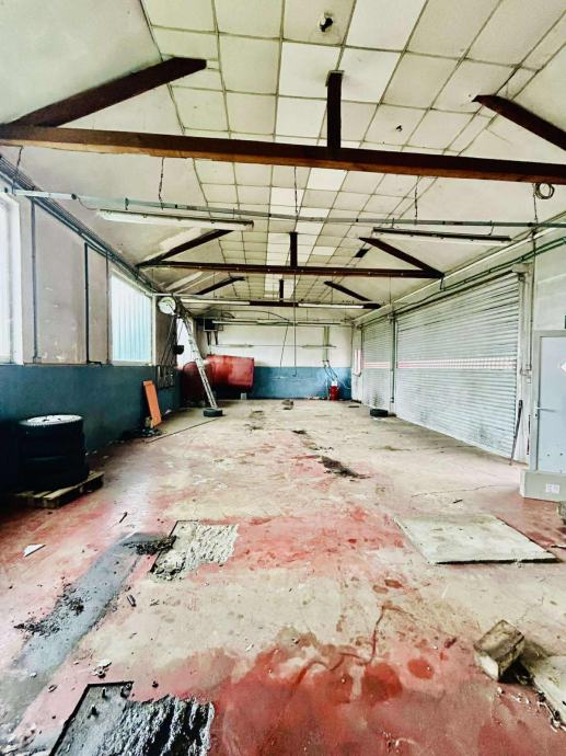 Poslovna zgrada koja se nadovezuje na stambenu građevinu sastoji se od dva prostora radione, te dva spremišta u ukupnoj površini od 172,36 m2.
