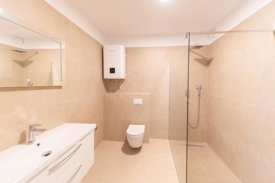 Prodaje se moderna novogradnja u Vodicama, samo 200m od Plave plaže i 700m od centra grada, nudeći udoban i funkcionalan životni prostor.